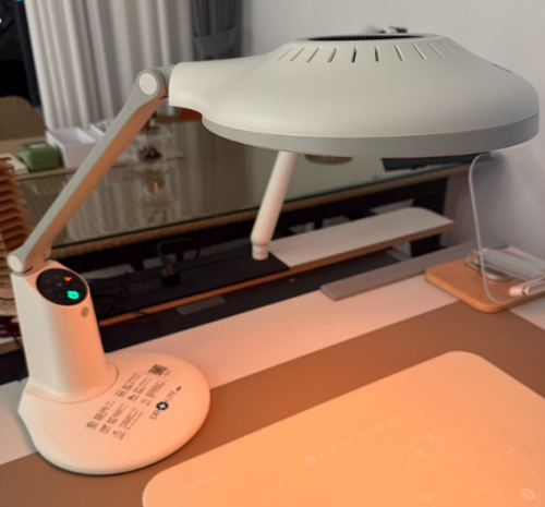 霍尼韦尔A9以其标志性的55cm长方形大灯头为特点,采用侧发光技术,能提供宽阔且均匀的照明,有效覆盖约1.2米的书桌区域。它搭载Sunturalux2.0类太阳光芯片,显色指数表现良好(Ra97),色彩还原自然。功能上支持入座感应和环境光自适应调光,使用体验省心。然而,其庞大的体积和重量对桌面空间有一定要求,移动不便,且定价处于中高端区间。它更适合桌面宽大、追求稳定均匀光照且预算相对宽松的家庭。