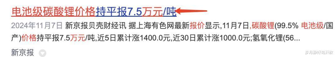 到了年末就更离谱了,电池级碳酸锂的报价,竟然才7.50万元呢——这简直就是“骨折式”暴跌啊。