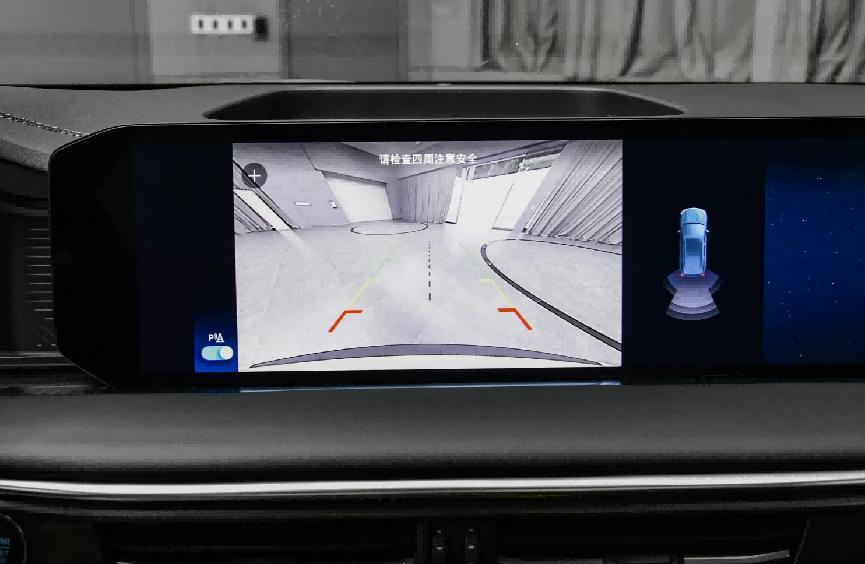 车辆在前排中控台上配备了一块27英寸的悬浮式中控大屏,其分辨率相当出色。再加上方向盘前的12.3英寸全液晶仪表屏,两块屏幕协同工作,能够为消费者带来更丰富的视觉体验。特别是中控大屏支持多点触控功能,能够帮助驾驶者及时调取各种常用功能,像卫星导航、蓝牙电话、车联网、道路救援服务等都是标配功能。而且车辆的车机系统还支持语音识别控制功能,其内置的智能语音助手支持主驾驶分区唤醒,并且可以实现连续性语音识别和“可见即可说”等功能,这能为消费者带来更好的使用体验。