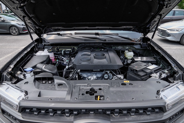 首先是动力。福特Ranger游骑侠搭载的是2.3T柴油发动机,137kW功率、470N·m扭矩,匹配8AT变速箱,调校比较偏稳型。上路之后它的油门响应线性,不飙不躁,日常通勤非常舒适。