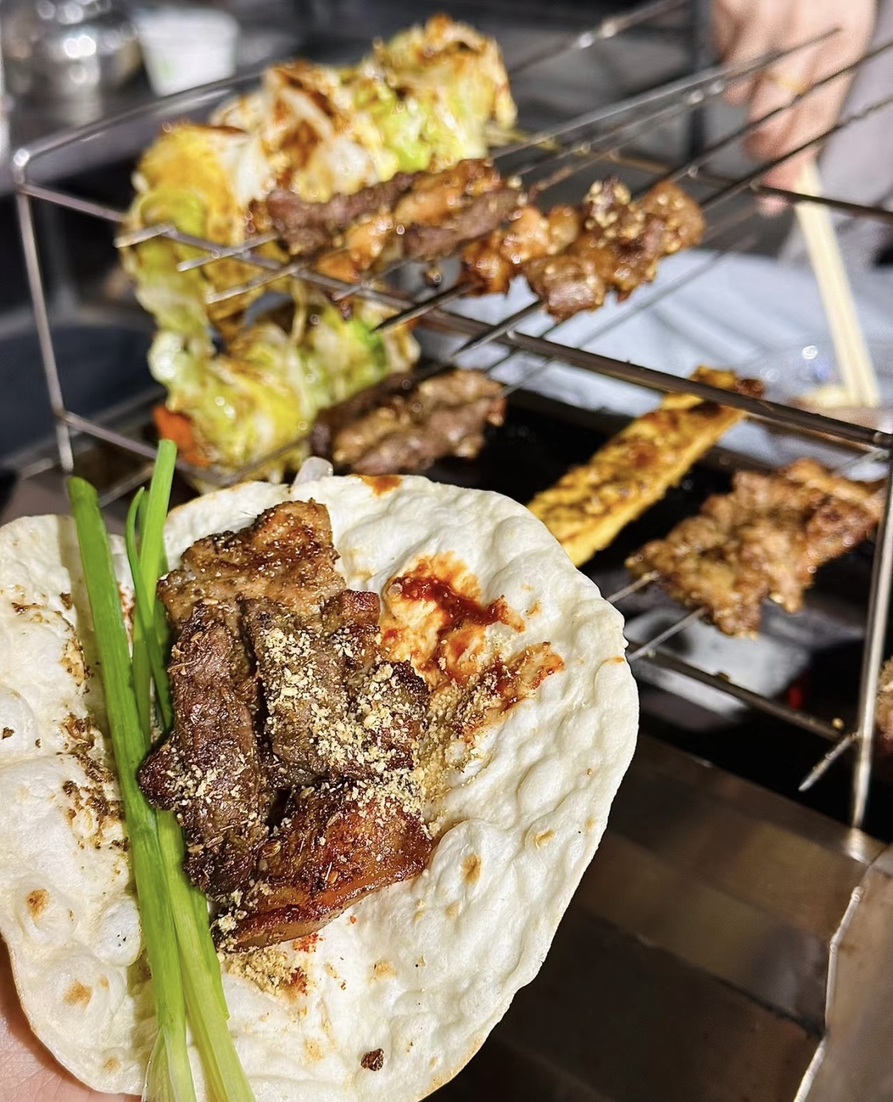 记得有一次,与三两好友漫步在海边,月光如水,海风轻拂,我们被一缕缕烧烤的香气吸引,不由自主地循着香味走去。那是一家不起眼的小摊,但摊前的热闹景象却让人无法忽视。摊主是一位中年大叔,手法娴熟,每一串烧烤都在他的巧手下变得色泽金黄,香气四溢。我们围坐在小桌旁,点了几串烤肉、烤蔬菜,还有那令人难忘的小饼卷烤肉。每一口都是对味蕾的极致挑战,肉质鲜嫩多汁,与小饼的柔软、酱料的浓郁完美融合,让人回味无穷。