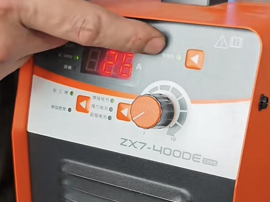 机器调校: 佳士这台ZX7-400D,电流我调到90A左右。这个电流不能太大,太大了瞬间就烧穿了;太小了电弧不稳,焊条容易粘住。