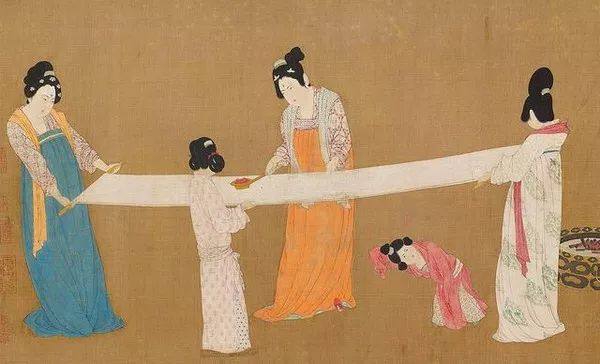 薄透的衣衫效果离不开大唐丝织品业的发展。在唐代,丝织品种类丰富,件件爆款,如绢、绫、锦、罗、纱、毂、缎、纨、绮等。这种丝织品轻薄透光,将大唐女性装扮得性感迷人。
