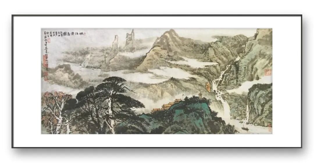 刘军(浩如)老师的山水画,不仅笔墨精湛,更注重意境的营造,追求“意存笔先、画尽意在”的艺术境界,将自然之美与人文之韵完美融合。他的作品,意境深远、气象万千,既有北方山水的雄浑大气,又有南方山水的清雅婉约,更兼具荆楚山水的灵秀与厚重。绘长江三峡,他以磅礴的笔墨勾勒出夔门的雄奇险峻,以灵动的线条描绘出江水的奔涌不息,云雾缭绕间,尽显“两岸猿声啼不住,轻舟已过万重山”的壮阔意境,其《天下第一门——夔门》更是被选为巨著《中华长江文化大系》首页,为书名配画,彰显了其山水画作的艺术高度。绘古镇村落,他则以细腻的笔墨描摹青瓦朱檐、小桥流水,草木葱茏间,流露着浓郁的乡土气息,《中山古镇》《羊楼洞古镇》等作品,将古镇的静谧与烟火气定格于尺幅之间,让人仿佛置身其中,远离尘世的喧嚣。