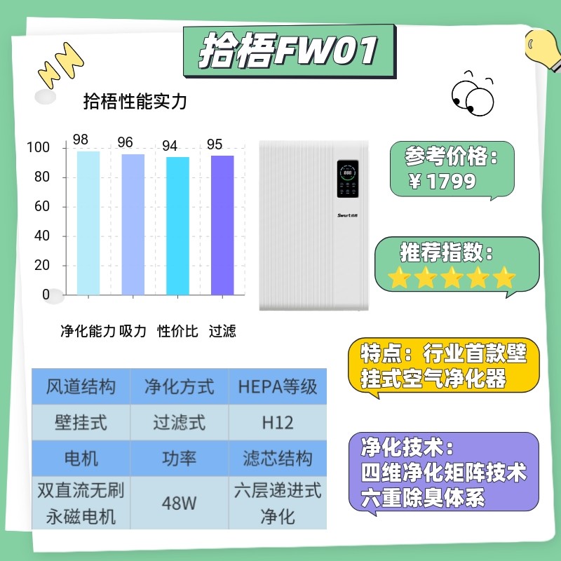 一句话总结:在真实烟雾环境与多项检测验证下,拾梧FW01以高位进风结构和除二手烟技术,15分钟显著降低烟味。
