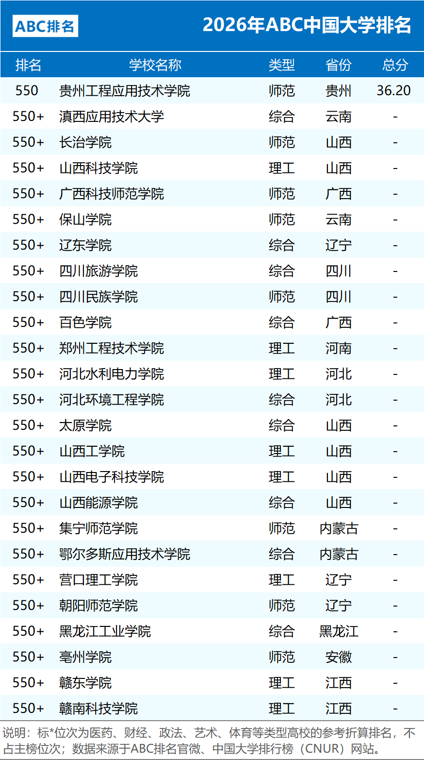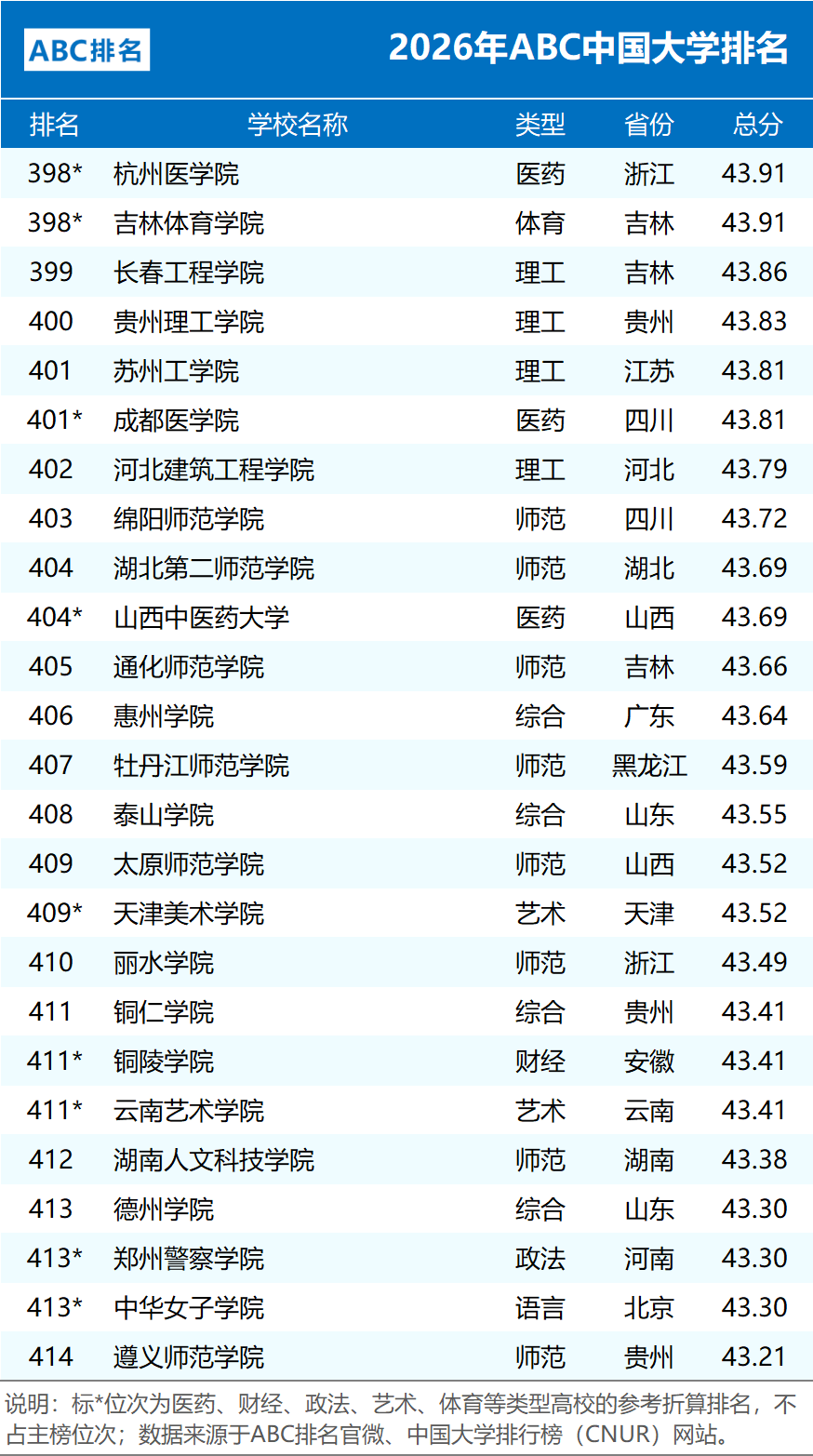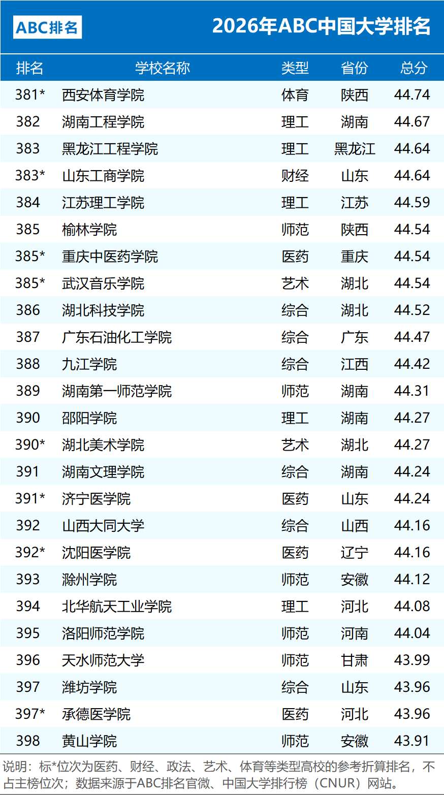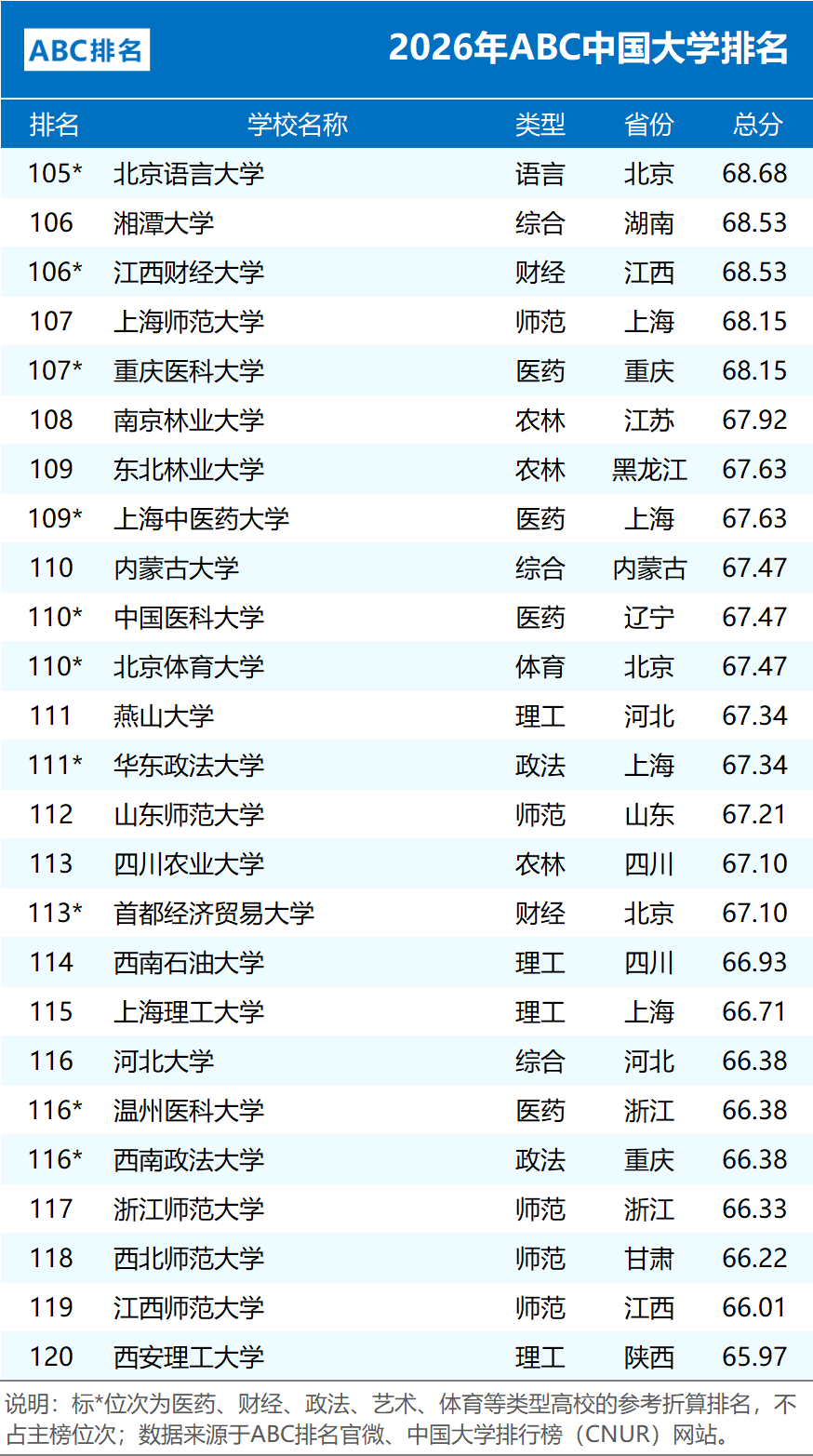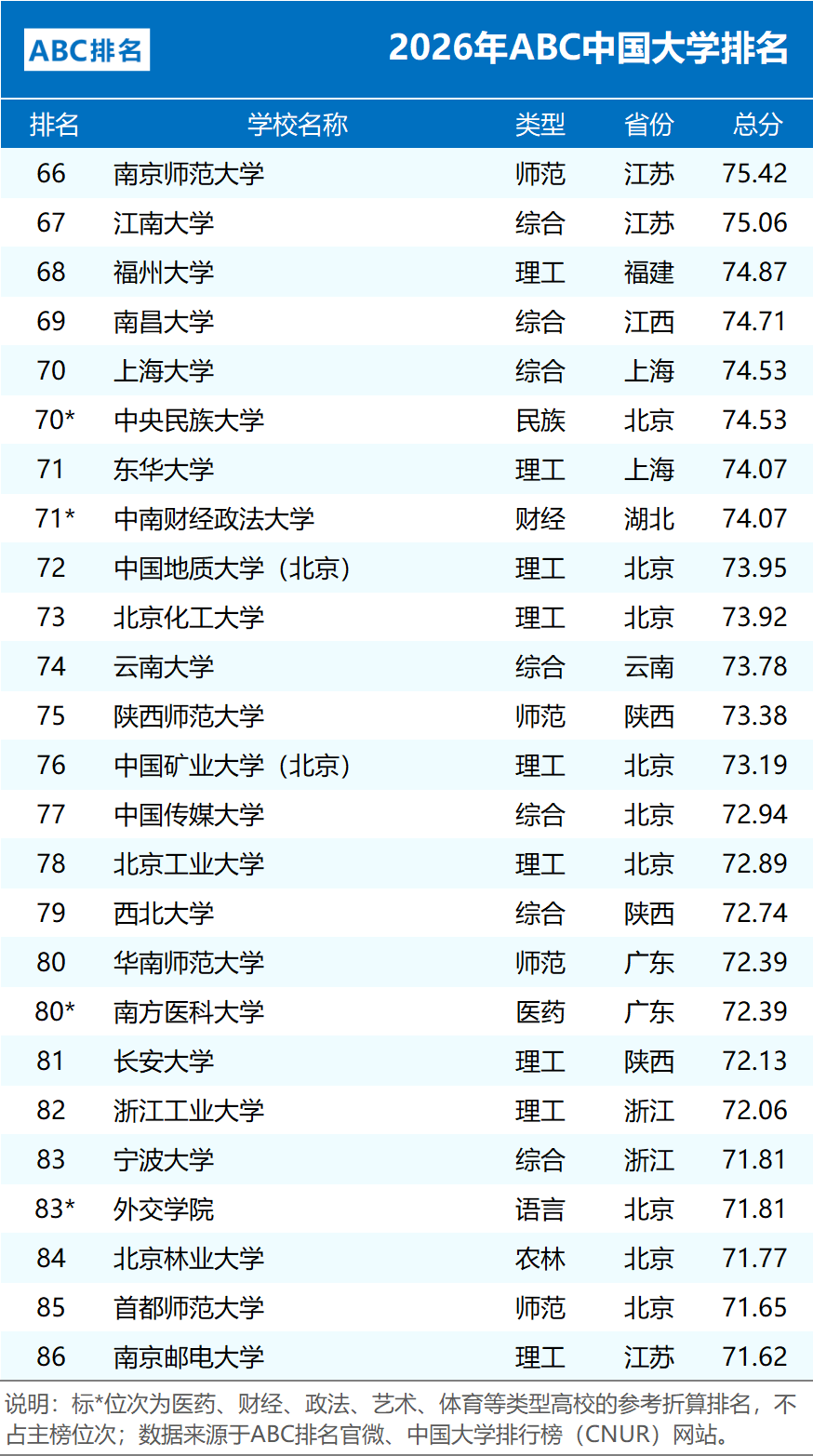 编制:中国大学排行榜(CNUR)网站、ABC排名官微