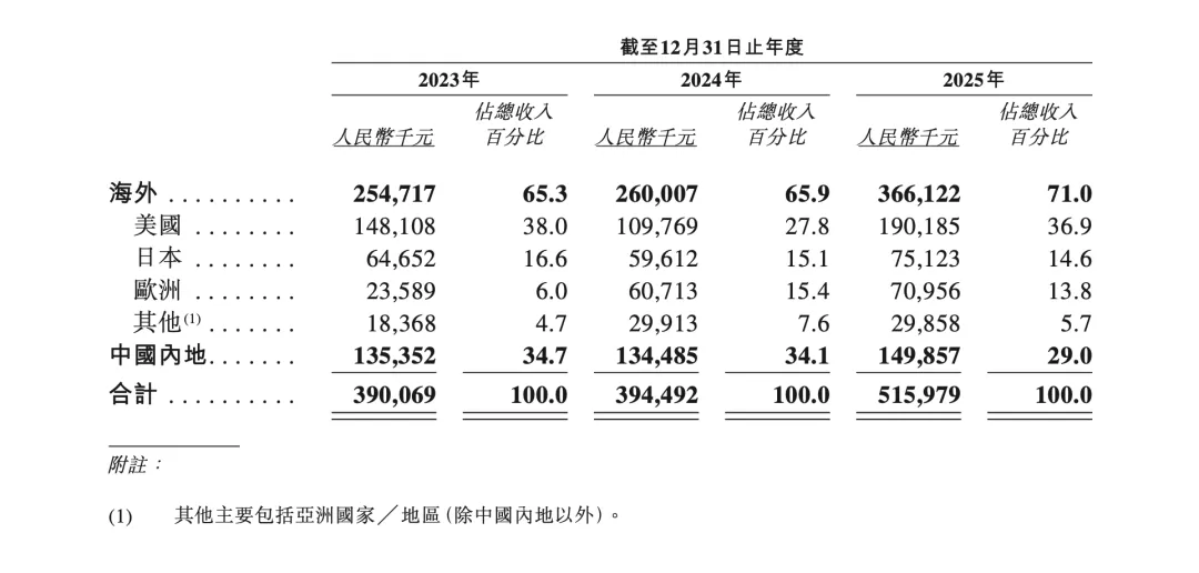 招股书显示,XREAL已步入高质量增长阶段。2025年,公司实现营业收入5.16亿元人民币,海外市场收入占比高达71.0%。受益于规模效应与高端化战略,公司盈利能力显著增强,毛利率从历史的22.1%大幅攀升至35.2%。同时,品牌影响力和运营效率的大幅提升,使公司商业化增长进入了良性循环,销售及分销费用率已降至25.4%,展现出强劲的自我造血能力。