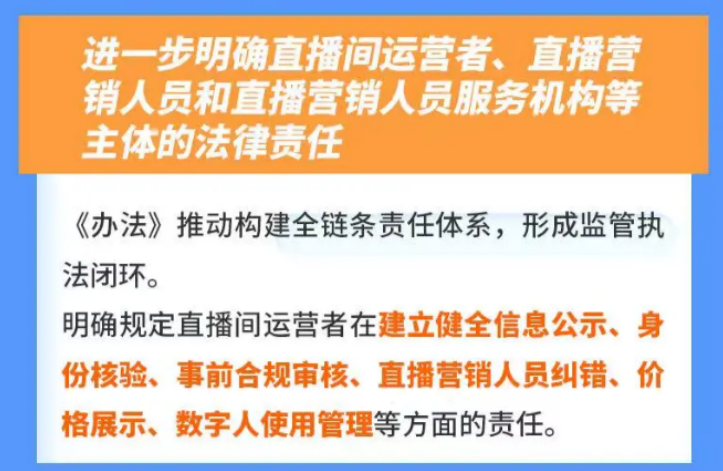 《办法》聚焦四类主体——直播电商平台经营者、直播间运营者、直播营销人员、MCN机构,构建了全链条责任体系。其中几项关键规定对行业影响深远: