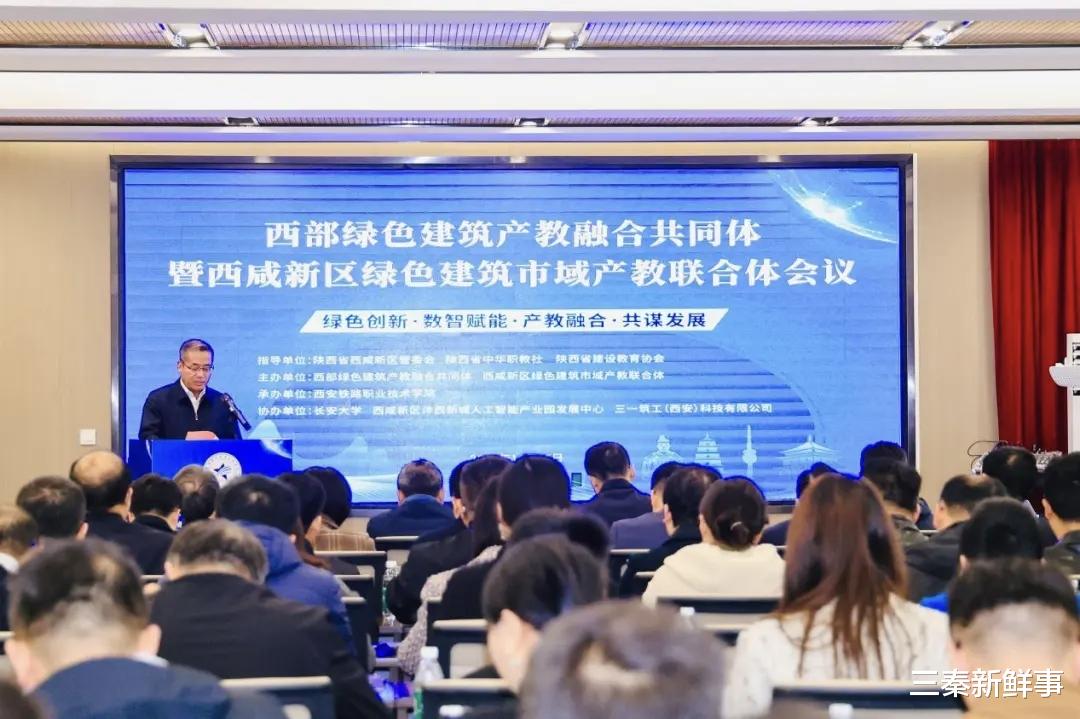 10月25日,由陕西省西咸新区管委会、陕西省中华职教社、陕西省建设教育协会指导,西部绿色建筑产教融合共同体、西咸新区绿色建筑市域产教联合体主办,西安铁路职业技术学院承办的西部绿色建筑产教融合共同体暨西咸新区绿色建筑市域产教联合体会议在西安铁路职业技术学院临潼校区成功举办。会议以“绿色创新·数智赋能·产教融合·共谋发展”为主题,政行企校领导,绿色建筑相关行业、企业专家及西部绿色建筑产教融合共同体、西咸新区绿色建筑市域产教联合体成员单位代表近80家单位共120余人参会,旨在汇聚政行企校资源,推动教育链、人才链、产业链与创新链协同,助力西部绿色建筑产业高质量发展。