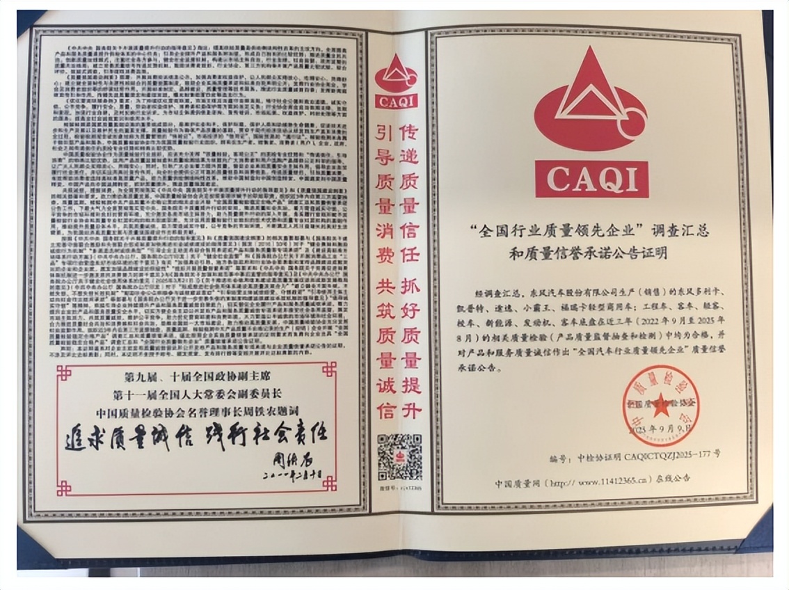 近日,由中国质量检验协会联合全国千家优秀企业发起,旨在推进《质量强国建设纲要》落地,所开展的2025年全国“质量月”企业质量诚信倡议活动公告正式发布!东风股份凭借卓越的产品品质与诚信服务,成功跻身国家主流媒体公告榜单,荣获“全国行业质量领先企业”称号,其质量信誉承诺获权威机构认证。