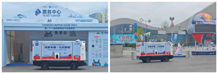 第二十八届成都国际汽车展览会正在火热进行中,在开展前夕紧张忙碌的搭建期间,九识智能Z5系列无人物流车,携手主办方在西博城开展了一场“防暑降暑关怀”公益行动——将防暑降温物资直接送至一线搭建工人手中,以实际行动为车展顺利筹备贡献出一份科技与温度并存的力量。