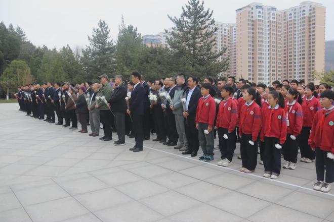 上午9时,庄严的祭奠仪式正式拉开纪念活动帷幕。全场肃立,高亢激昂的国歌声响彻陵园上空,歌声饱含着对革命先烈的无限敬意。国歌奏响完毕,现场全体人员低头默哀,深切悼念为革命事业壮烈牺牲的“四·八”烈士。默哀结束后,向烈士纪念碑敬献花篮,全体人员行三鞠躬礼,表达对先烈的追思与缅怀。延安东辰中学附属小学少先队员们身着整齐服装,昂首挺胸,齐唱《我们是共产主义接班人》,稚嫩而嘹亮的歌声,彰显着传承英烈遗志、争做时代新人的坚定信念。