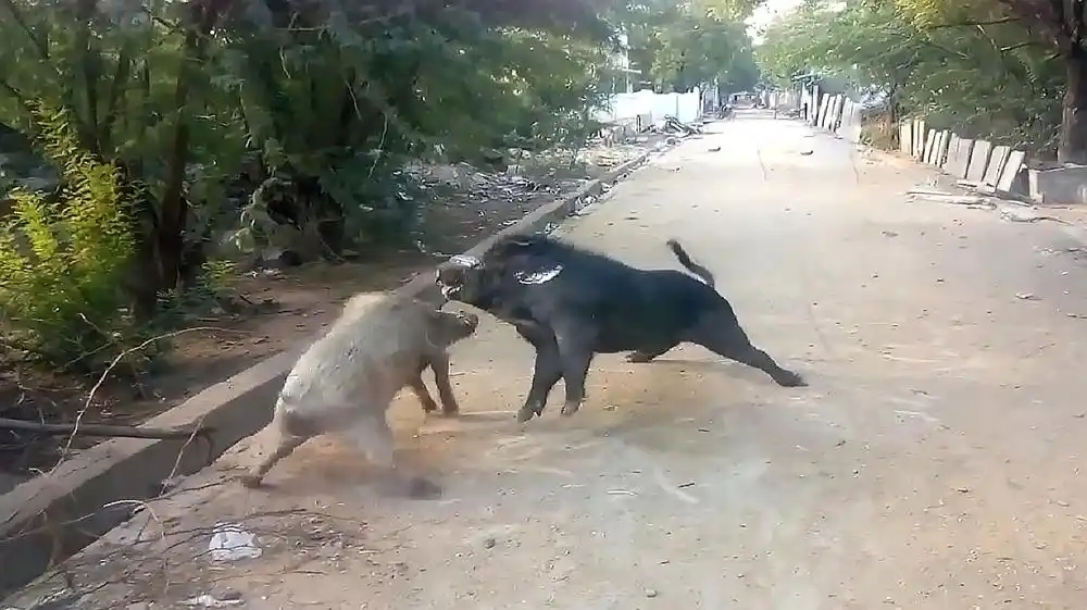 值得一提的是,即便是训练有素的专业狩猎犬,在没有枪炮的加持下,也是很难对野猪造成威胁的。不少人可能或多或少都听说过前段时间甘肃天水一支护农狩猎队,12条猎犬围捕400斤野猪王,4条猎犬壮烈牺牲的事情。