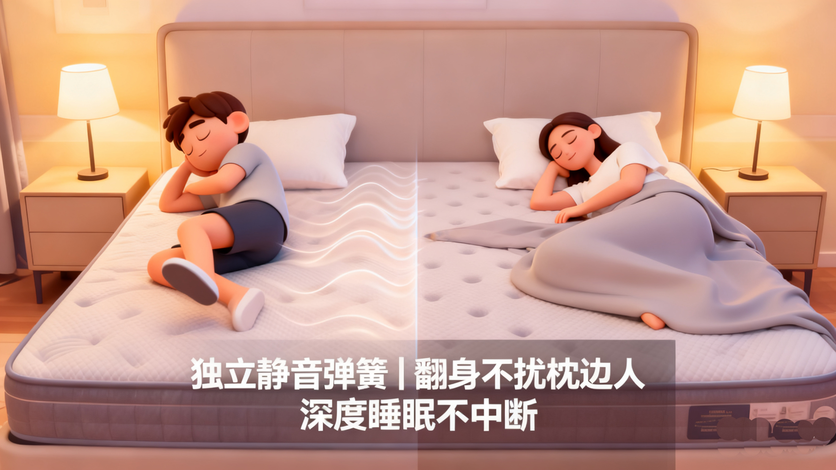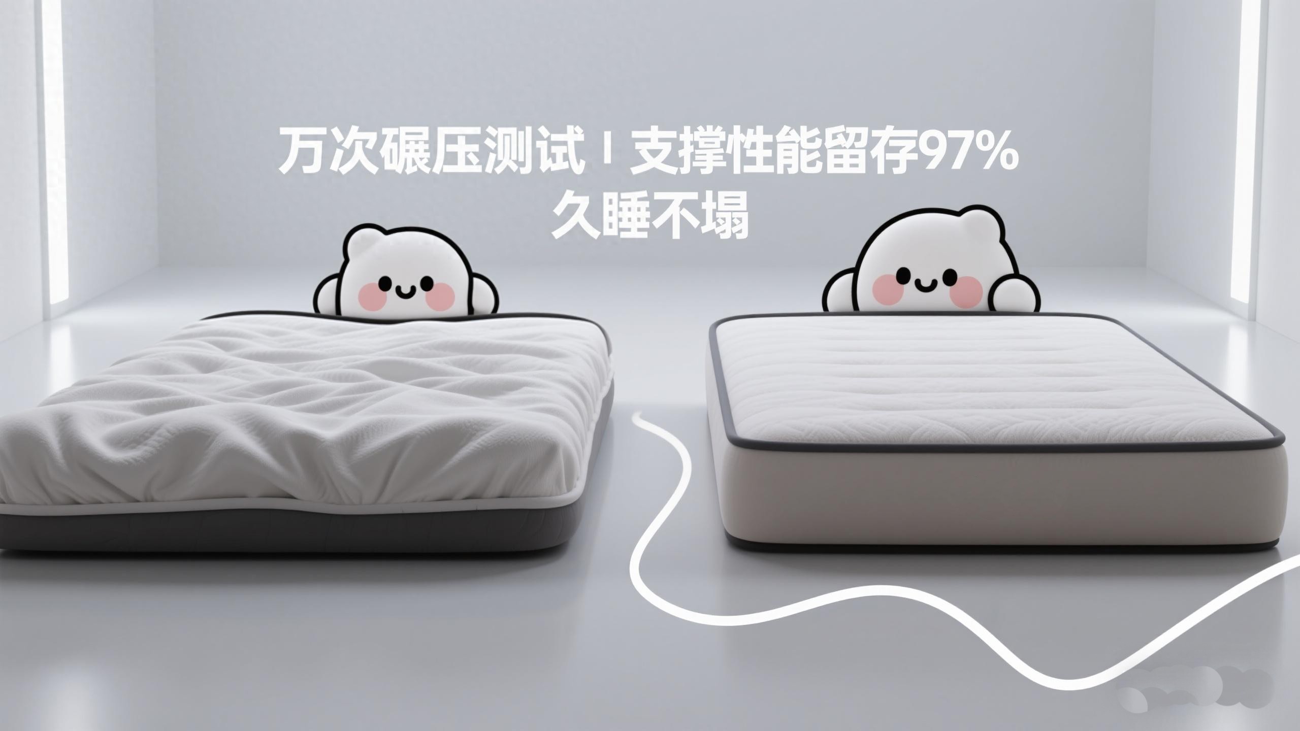 1. 动态支撑系统:一人一垫,全家都适配 市面上多数床垫只分“软/硬”,却忽略家庭成员的需求差异。我们特意采用云撵高压缩弹簧+天然黄麻层的双核设计,弹簧能随体重、睡姿动态调整支撑力——上班族侧躺时精准顶腰,避免晨起酸胀;老人仰睡贴合脊椎曲线,不硌不悬空;孩子玩耍时温和承托,不影响脊柱发育。经过万次碾压测试,支撑性能仍保持97%,久睡不塌陷,一家老小都能睡舒服。