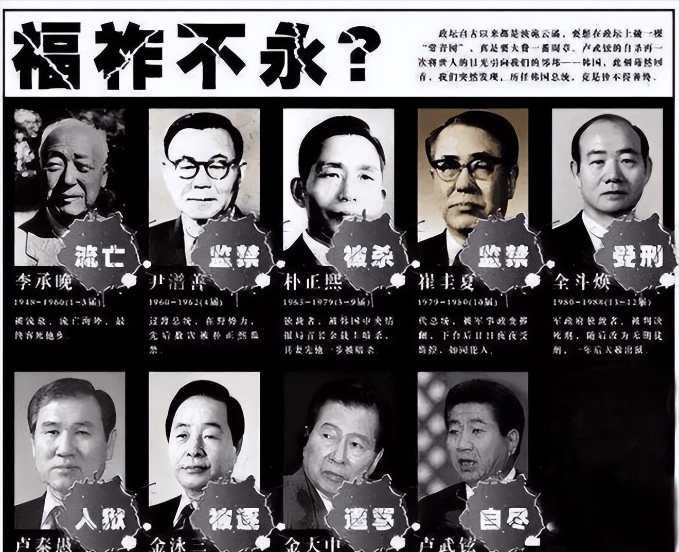 韩国自成立以来,担任过总统的人大都结局悲惨,这也让韩国总统成为了一个众所周知的高危职业,玄学一点,还有“青瓦台魔咒”的说法,意思是说入住青瓦台,当过韩国总统的人,大都没有好结局。