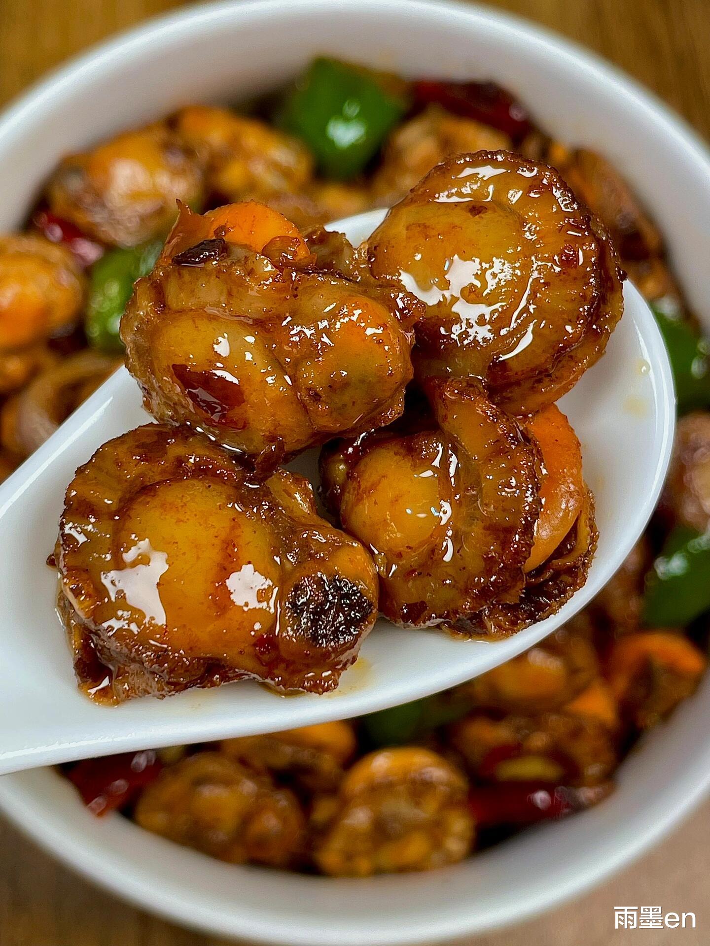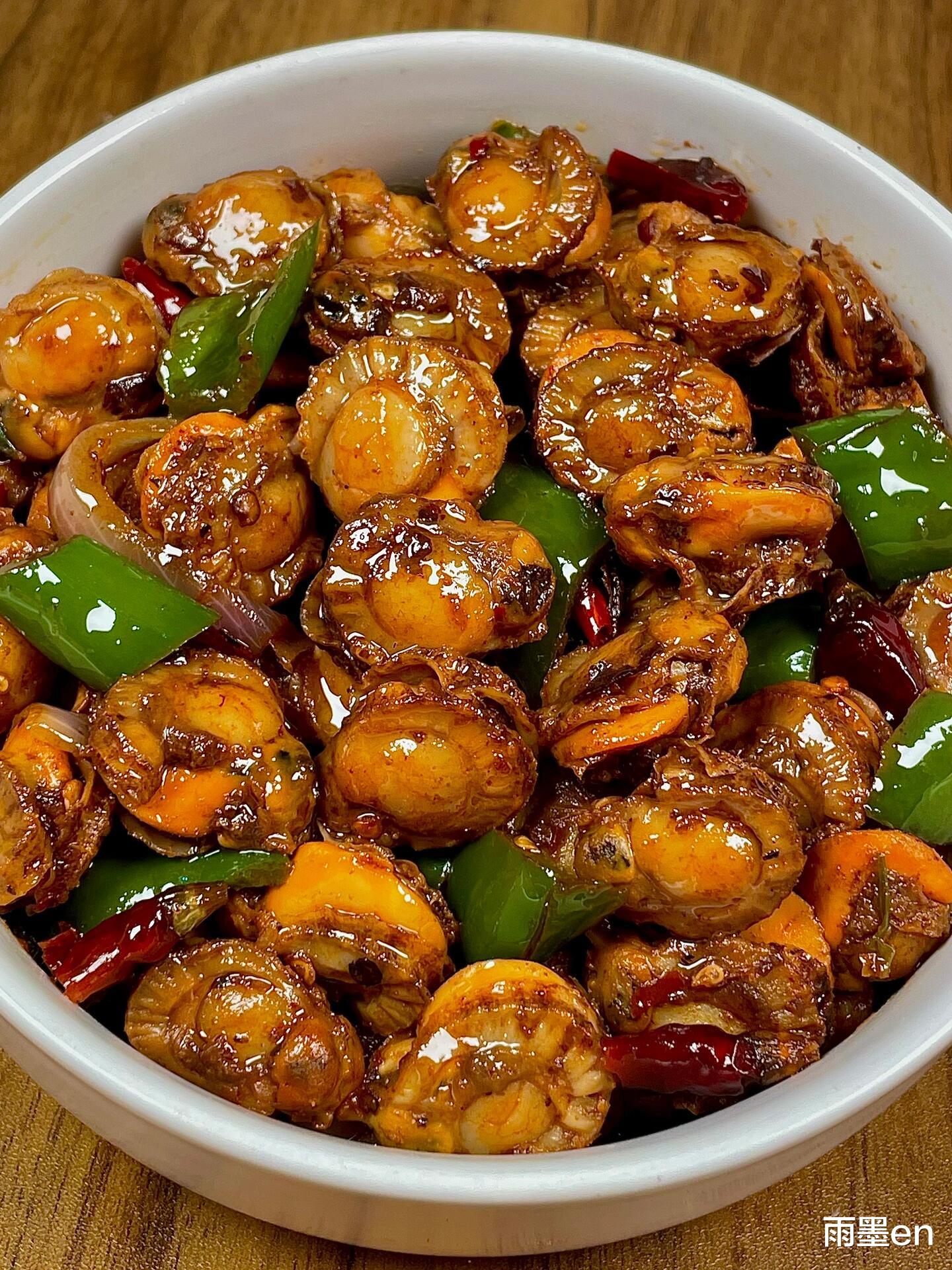 贝肉焯水时加片姜,去腥效果翻倍;炒椒块时别等油太热,否则辣椒会发苦;最后出锅前可以撒把葱花,绿的看着更喜庆。要是喜欢更浓稠的酱汁,可以调半碗水淀粉勾芡——但老饕都懂,最鲜的吃法是连汤汁都拌饭吃光!