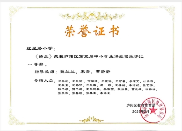 此次荣获区级一等奖,是对学校美育工作和课堂乐器教学的充分肯定。未来,合肥市红星路小学将继续深耕艺术教育,积极开展课堂乐器教学,让音乐浸润校园,让艺术点亮童年,助力每一位红星少年在美育的滋养下全面发展、快乐成长!