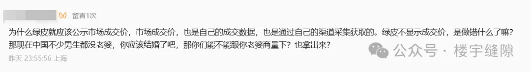我总结一下,他们无非是觉得楼宇不懂,假谈压价甚至请演员这是行业潜规则,少见多怪,不要上纲上线,绿牌也是被逼无奈,市场就是这样,我们是为了帮助买家和卖家。