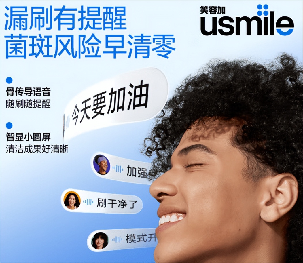 usmileY30的核心亮点是全智能适配,堪称懒人福音。它能自动学习你的刷牙习惯,比如常用力度、偏好清洁区域、刷牙时长等,进而定制专属清洁方案,不用手动调整模式,上手就能贴合个人需求。搭配智能小圆屏,刷牙时能实时显示清洁进度、模式选择,更关键的是会精准提醒漏刷区域——比如后槽牙、牙缝等容易忽略的部位,确保每一颗牙齿都被清洁到位,彻底告别凭感觉刷牙的盲目性。