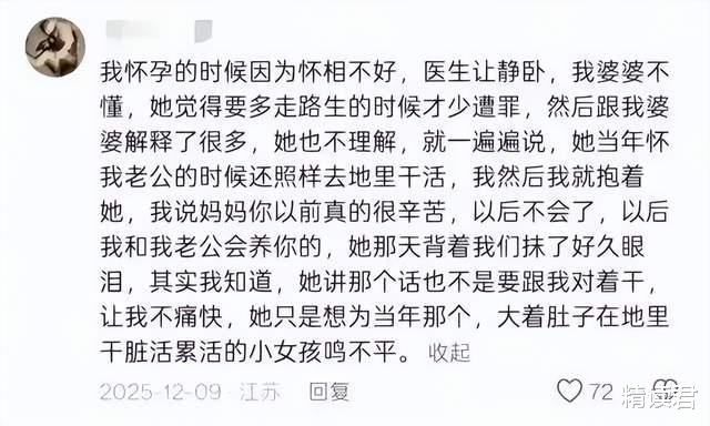 那一刻她突然明白:婆婆反复讲当年的事,不是要跟她对着干,不是非要她挺着肚子下地干活,只是想为当年那个大着肚子在地里干脏活累活的小女孩,鸣一声不平。