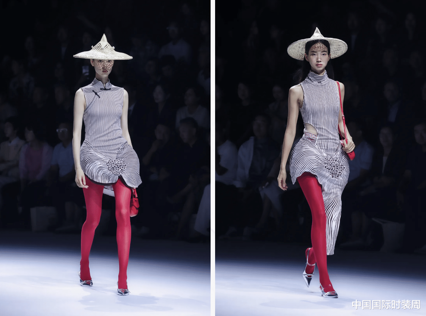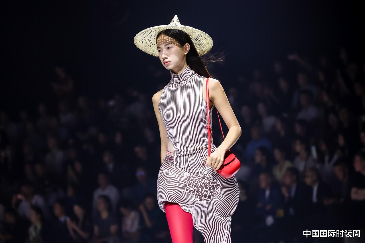 黄斗笠、花头巾、短上衣、宽筒裤、银腰带等传统惠女服饰元素经设计师陈宇解构重塑,以现代剪裁、创新面料与色彩组合焕发新生。模特步履间,仿佛惠安女踏浪而来,既有传统服饰的质朴底蕴,又不失当代设计的流动与张力。现场观众沉浸于海浪声、石凿声与闽南乐韵交织的氛围中,感受一场跨越时空的时尚对话。