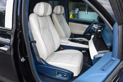 让我惊喜的是车内整体的空间通透感。大面积双层静谧隔音玻璃、全景天幕以及极简的内饰线条,让车厢内毫无压抑感。配自动三区空调控制方式,后排有独立的空调和出风口,还配合主动式空气净化系统和智能香氛装置,每一次出行都像在移动的五星级酒店套房中穿行。这还不说,标配的车载冰箱具有加热冷藏冷冻功能,遇到炎热的夏天来上一杯冰爽的西瓜汁爽到心坎,寒冷的冬天来一杯热气腾腾的奶茶暖到心窝。