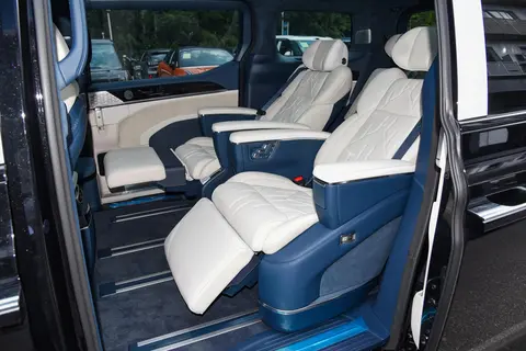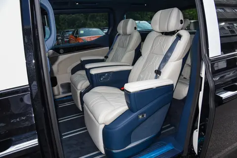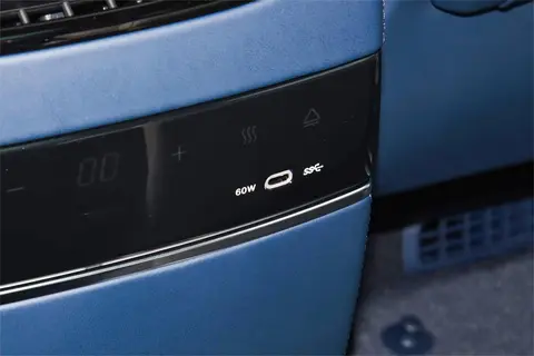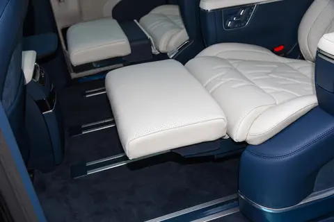 第二排配两张NAPPA真皮包裹的航空座椅支持多向电动调节、腿托伸缩、加热通风按摩一应俱全。当我打开按摩功能,真的就像一位按摩师在为自己按摩很舒适。身高178cm的老婆,调至舒适坐姿后,腿部仍有两拳以上的余量,头顶距离车顶也绰绰有余。更贴心的是,座椅之间宽敞的过道,既保证了乘坐私密性,又兼顾了通行便利,家人或商务伙伴并排而坐也不会感到拥挤。第二排的小桌板方便临时办公、喂婴儿食物等,提供便捷性。车内有了加热的功能,炎热的夏天坐进车里不会闷得慌,寒冷的冬天坐进车里也不会冰屁股,不用垫暖垫。