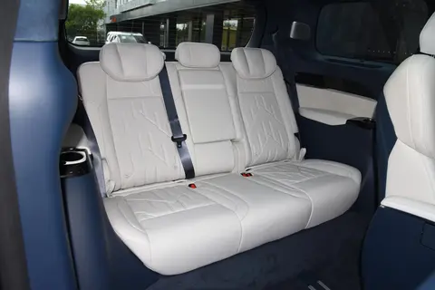 第三排的表现更是颠覆了我对MPV的传统认知。以往很多车型的第三排被称为“应急座”,但极氪009的第三排几乎与第二排拥有同等礼遇。坐垫厚实、靠背可调,腿部空间同样充裕,我坐在后排仍能轻松翘起二郎腿。三个座位均为独立凹陷设计,中间过道自然形成,让第三排乘客也能体面进出后备箱或与前排交流。