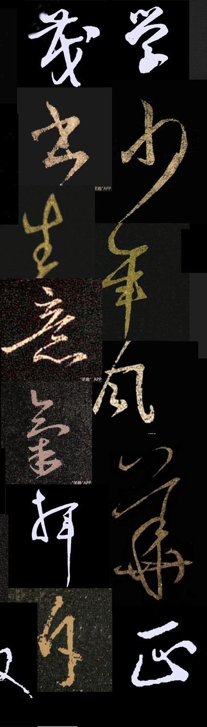 来(唐张旭)百(唐怀素)侣曾游,忆(北宋黄庭坚)往昔峥(明倪元璐)嵘(明倪元璐)岁月稠(明文征明)。恰(宋赵孟頫)同