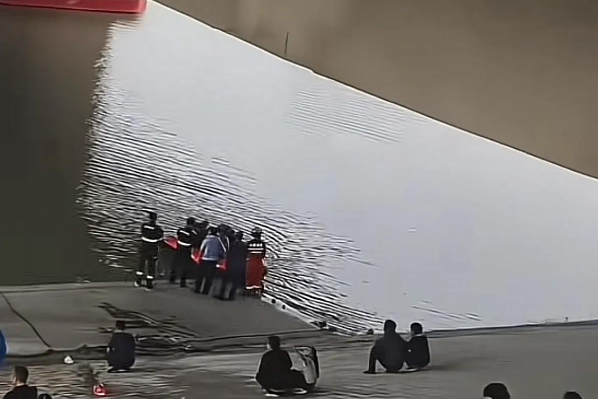 现场经过两个小时后打捞,才找到了小伙子的遗体,很多人都在那里围观,有的人在祈祷能够出现奇迹。