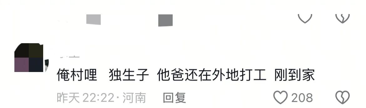 本村的人说这个是独生子,孩子父亲还在外地打工,现在刚到家。