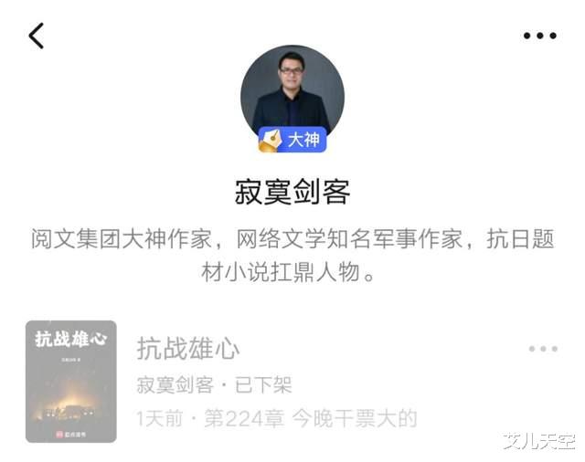 军事文大神寂寞剑客的抗日题材新书《抗战雄心》在昨天下架了。