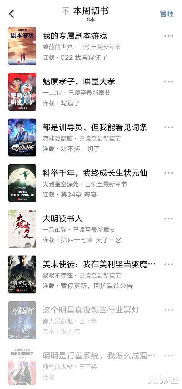 另外“隐为者”、神枪老飞侠、南原南原等人的作品也都在完结,隐为者的那本赛博修仙因为成绩不够理想四百均上下的成绩不到六十万字就结束了。