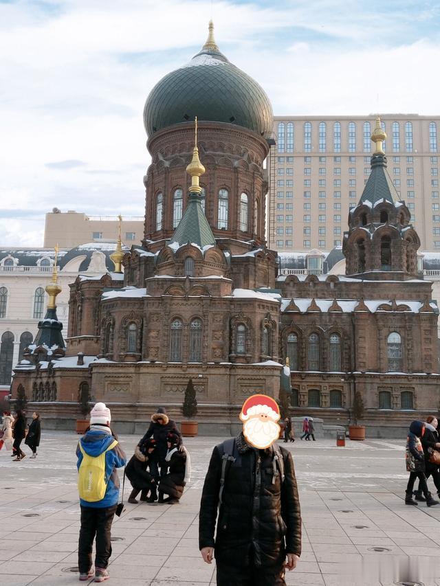 走过中央大街,走过哈一百,就走到了索菲亚广场。这里坐落着哈尔滨又一个不容错过的打卡地标,圣 · 索菲亚教堂,始建于1907年,是一座典型的拜占庭式东正教教堂。因为设计者是俄国人,主穹顶和钟楼便采用了俄罗斯传统的“洋葱头”+“帐篷顶”造型。走近红砖绿顶的大教堂,细细端详欣赏,只觉格外典雅壮美!