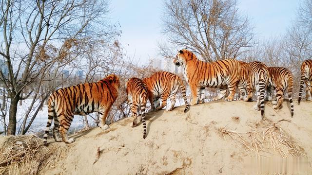 黑龙江哈尔滨东北虎林园,是目前世界上最大的东北虎野生自然保护园林。位于松花江北岸,占地144万平方米,散养着三十多只斑斓猛虎。游览虎林园必须乘坐园区的专用旅游车,车内结结实实地安装了一圈铁栅栏,以防遭受猛虎攻击。普通动物园是站在笼子外面看老虎,来到虎林园则是关在”笼子”里给老虎看,真是别有一番滋味在心头!游客们可以现场选购活鸡,投入虎群之中,观看群虎相争的激烈场面,令人过目难忘!这在一般动物园是无法体验到的。