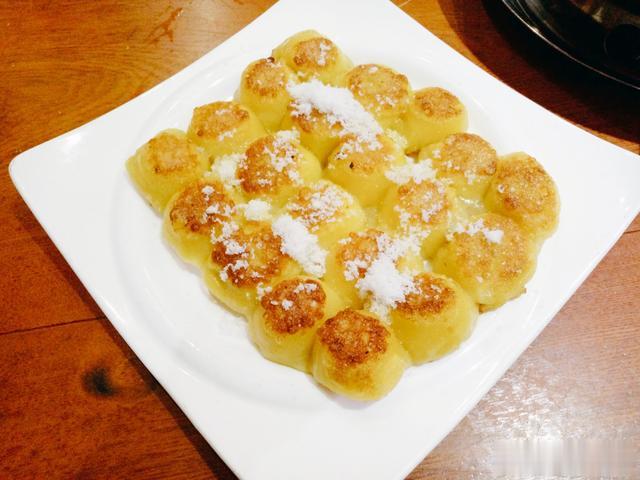 撒上白糖色泽金黄的粘豆包,也是北方传统天然食品之一。