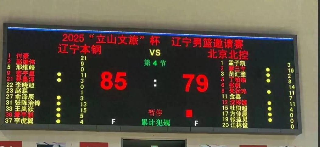 易边再战,廖三宁助力北控将比分追至45平,此后的进攻双方互有建树,辽宁男篮带着两分优势 进入末节,开局阶段北控能够顶得住,辽宁始终保持微弱领先,末节比赛最后时刻,北控进攻“断电”防守强度下降,被辽宁抓住机会,终场哨响比分定格在85:79,双方的首场热身赛,辽宁男篮收获“开门红”。