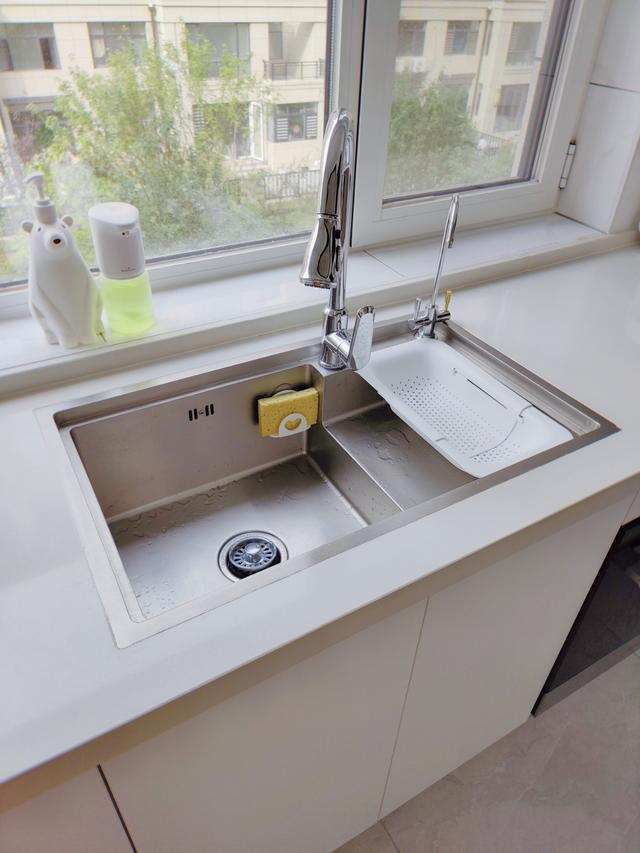 5. 大单槽优先关于厨房水槽的选择,单槽和双槽各有优缺点,确实让人纠结。但实际上,对于小户型或空间有限的厨房来说,大单槽确实比双槽更加实用。