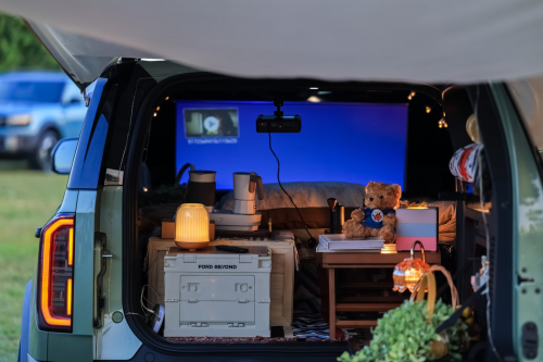 晚上爱和朋友小聚,福特智趣烈马体验日让我找到新据点,福特智趣烈马北京体验中,后备箱的投影支架一装,挂块幕布就能看老电影,举升车顶后车内不压抑,四个人坐里面也不挤。作为福特智趣烈马生活探险家,尾门厨房煮点小火锅,6kW 外放电够带动电磁炉,边吃边看超温馨。