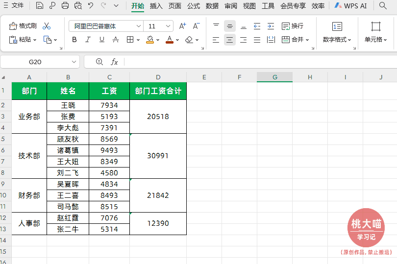 在Excel中合并后的单元格然看着是一个大的单元格,但是实际上数据是放到合并之前最上面一个单元格内,比如说D列“部门工资合计”-“业务部”这个单元格,合并之前包含D2、D3、D4,合并后每个合并单元格的第一个单元格是有值,也就是说D2有值,D3、D4是空。到D5时,又有计算结果了,这个计算结果正好被上面的合并单元格减掉。