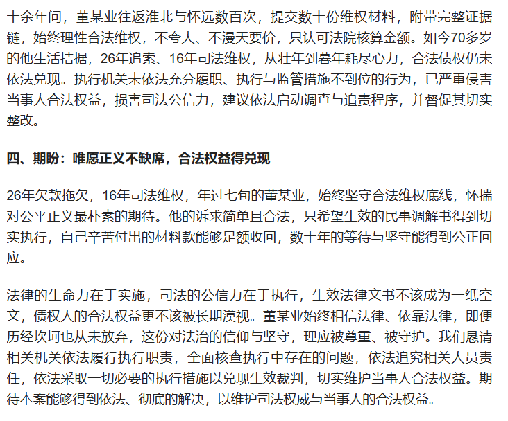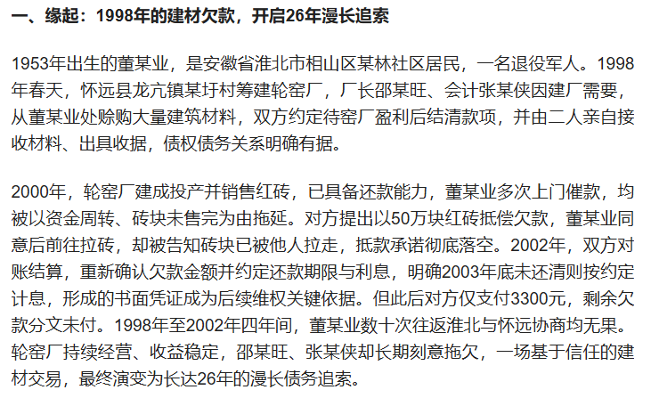 本人转载自百度用户“尉板瑞01”的文章《1998年一笔建材欠款,七旬老人维权26年:胜诉易,执行难》,如有不实言论请联系
