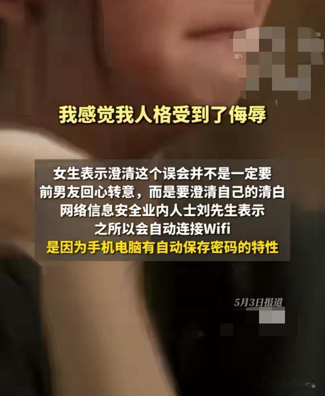 手机自动连上无线让男友给看见了,女生为难的是这前男友会把消息给传出去。从前男友口里传出去估计就不是什么好话了。