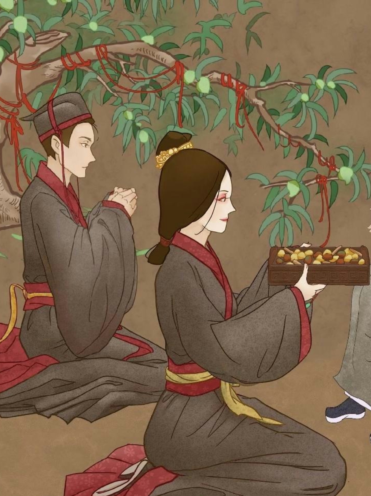 再次,“有蕡其实”“其叶蓁蓁”,也体现了新娘子从少女到母亲身份的转变,彰显了当时人们对生命传承不息的渴望。