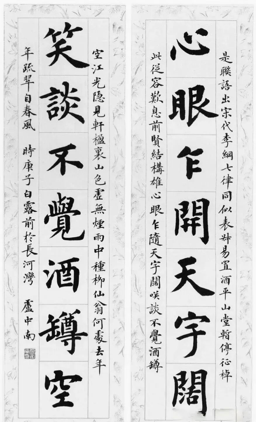 细看卢中南楷书,会发现其笔法严谨,结构巧妙中带有正气,是欧阳询的特征,但笔画方中带圆,转折婉转、字势左轻右重,又突破了“欧楷”之风。