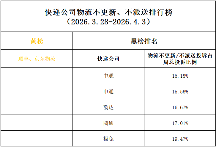 由此可见,即便是口碑相对较好的顺丰和京东物流,也会陷入“物流不更新”“延迟派送”的窘境。只不过,顺丰和京东物流以高端服务的形象示人,一旦出现问题,让消费者更难以接受。