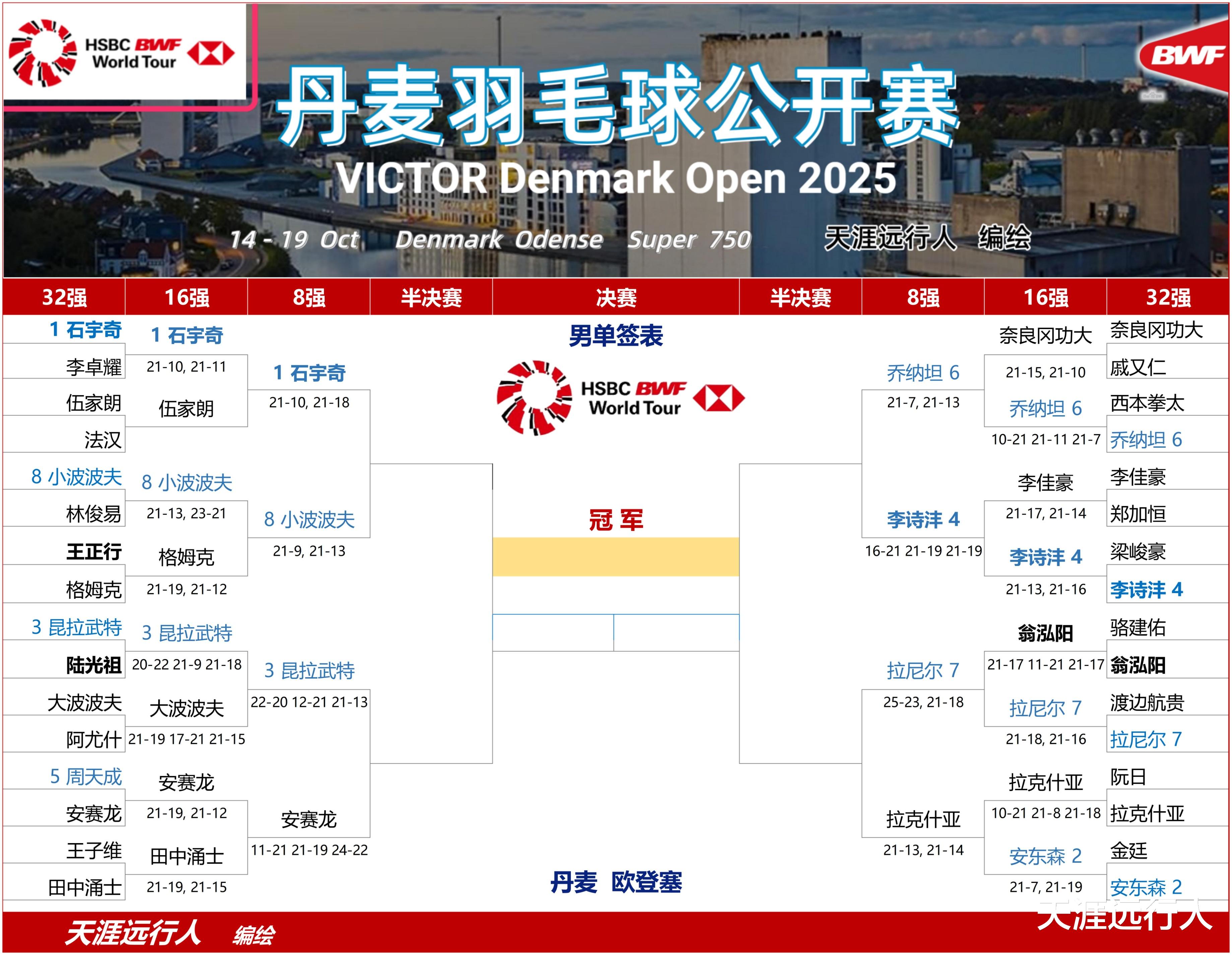 2025世界羽联丹麦公开赛1/8决赛国羽重点赛事战报赛况