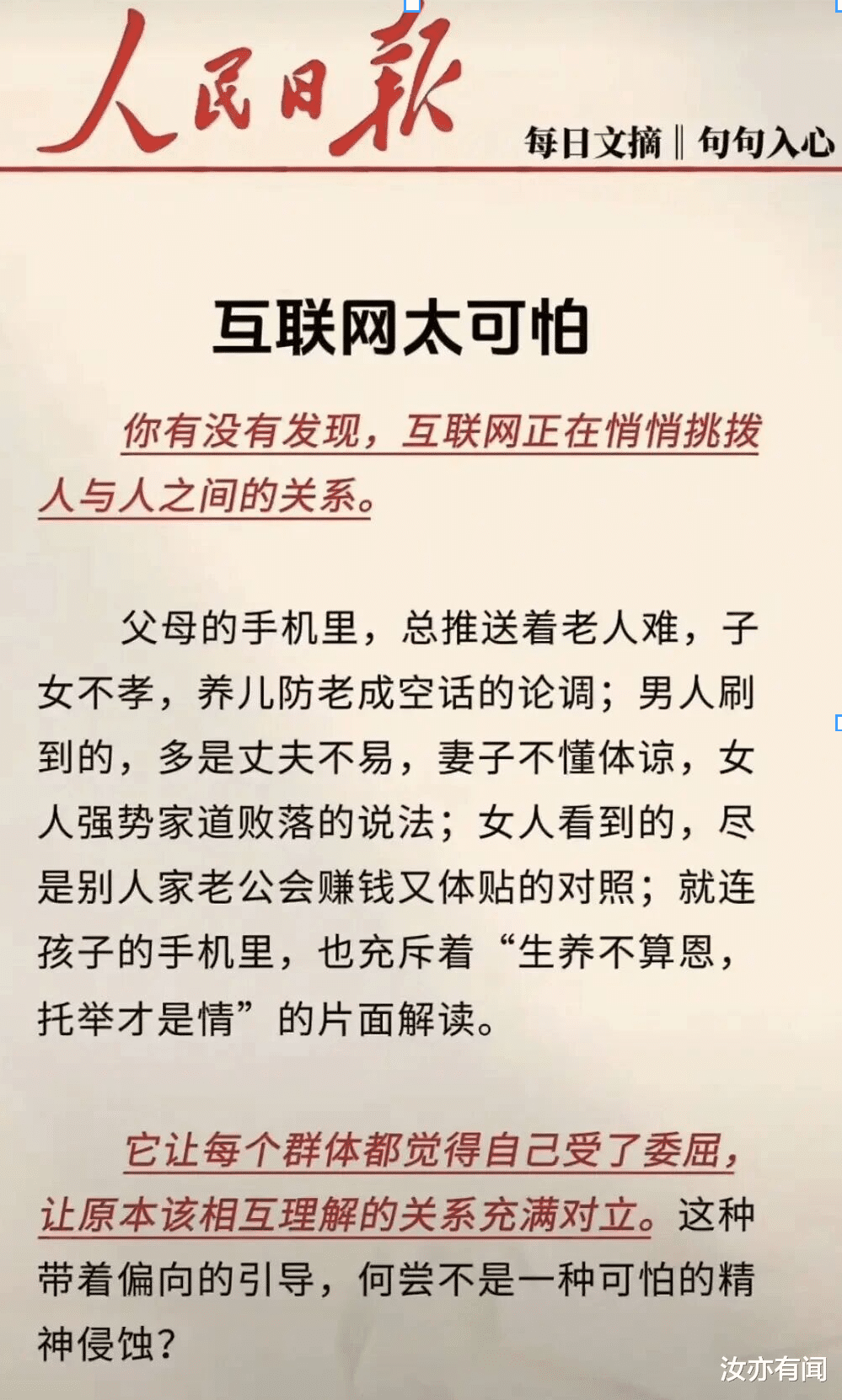 你们刷着完全不同的世界,隔着算法筑起的高墙,话不投机,渐渐无话可说。