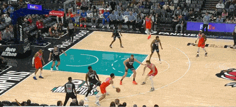 弧顶米切尔和肯威发起掩护,肯威顺下时吸引了上线的考沃德协防刷卡,米切尔见状将球交给接应的杰伦,杰伦迅速攻击考沃德的closeout来到禁区边缘抛投打进。