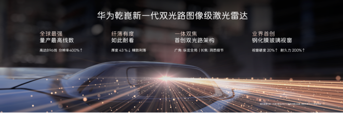 华为为双车带来全栈智能科技。辅助驾驶层面,两车均搭载华为全球量产最高896线双光路图像级激光雷达、华为乾崑ADS 4.1辅助驾驶系统与CAS 4.0全维防碰撞系统,实现全路况NCA领航辅助与全天候主动安全防护。其中,896线双光路图像级激光雷达,让车载激光雷达的成像能力从点云级向图像级跨越,可稳定识别120米外14cm高障碍物,即使在夜间光线不足的情况下也能清晰还原真实物理世界。智舱层面,双车均搭载鸿蒙座舱HarmonySpace 5,内置MoLA大模型多维智能体,支持自然连续对话、导航模糊纠错与场景化智能推荐,实现了从“听懂指令”到“读懂人心”的进阶,从辅助驾驶安全到座舱交互全面升级,带来更从容、更贴心的智能出行体验。