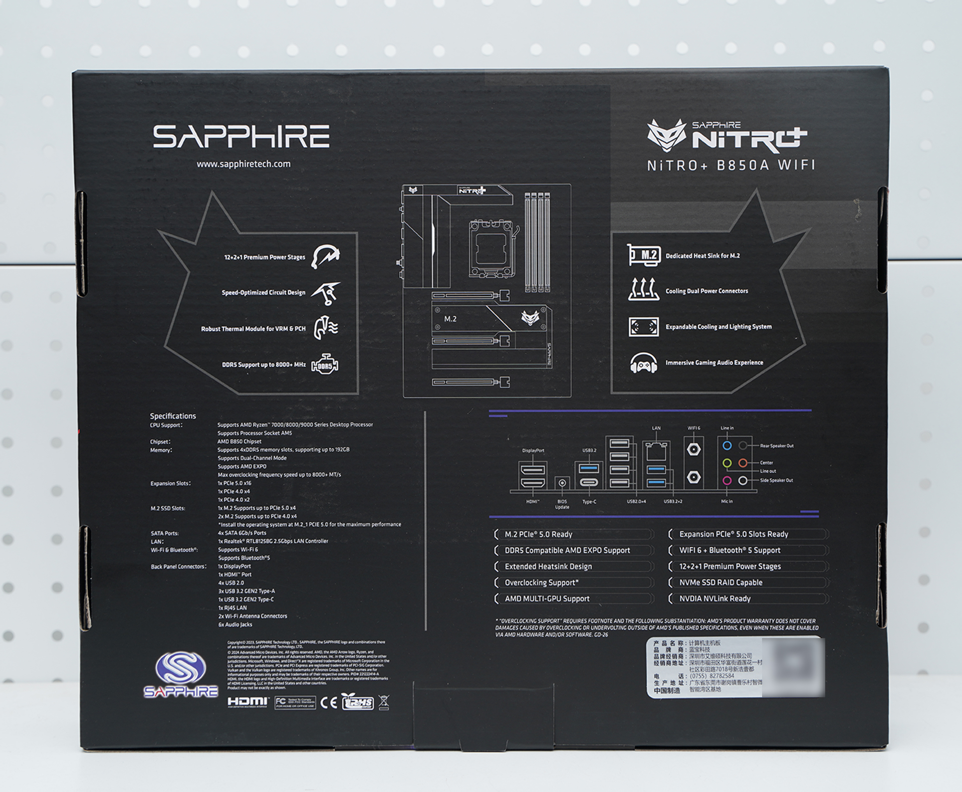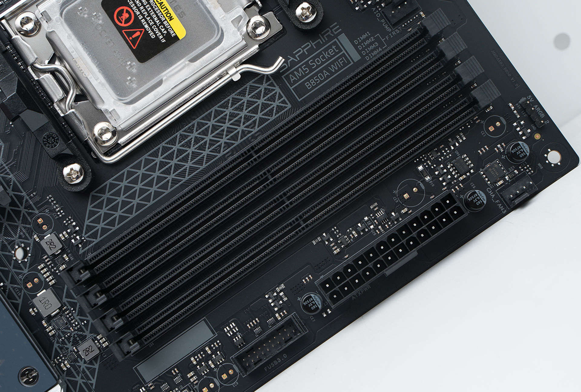 得益于B650不错的规格以及有着不错的性价比,不少人都用它来搭配高端或者旗舰锐龙处理器,因此主板的供电尤为重要。蓝宝石NITRO B850A WIFI采用12+2+1相供电,这个规格喂饱旗舰R9 9950\R9 9950X3D处理器也不在话下。